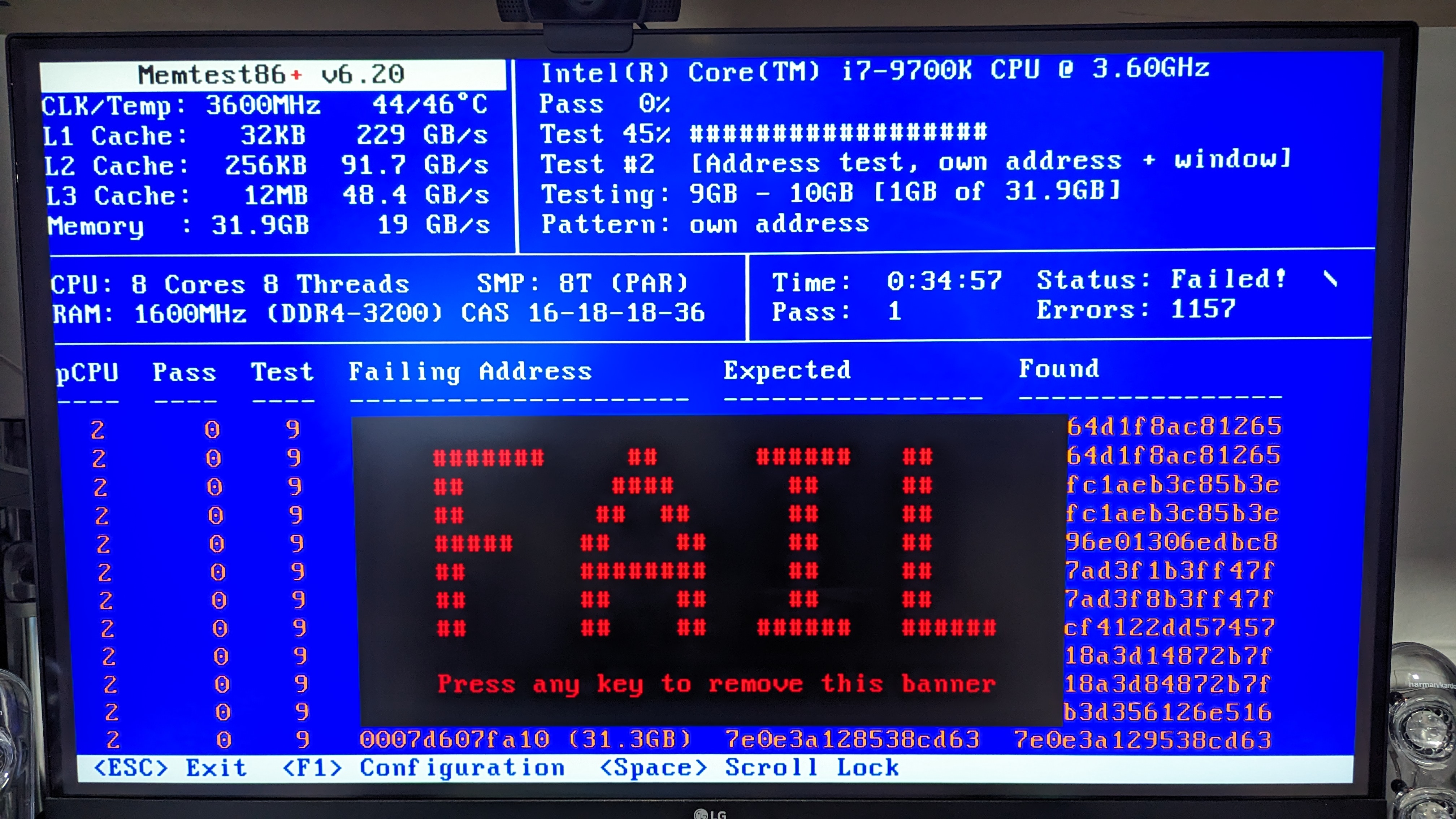 When the first pass concluded at ~30 minutes, it was a big ole fail. RAM Fail FAIL
